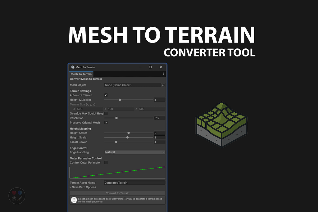 A tool that transforms 3D meshes into fully editable Unity terrain object. Provides precise control over terrain generation with customizable resolution, height mapping, and edge handling.